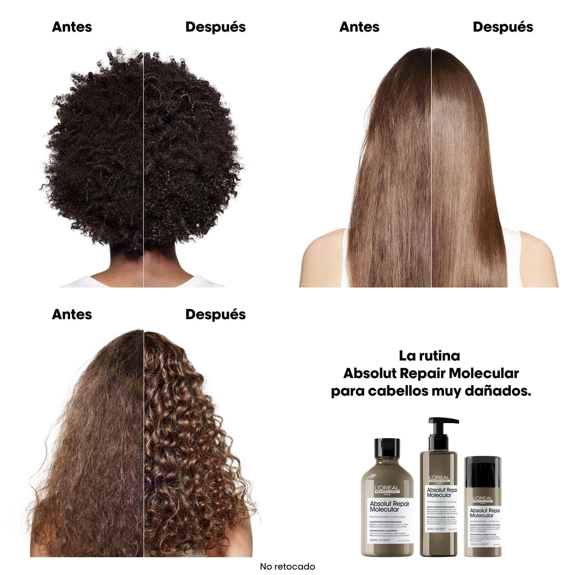 - Para Todo Cabello Dañado: Recomendado para todas las texturas de cabello dañado, ya sea teñido, decolorado o natural.