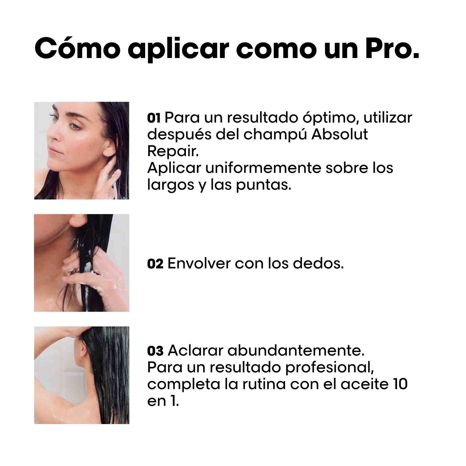 Transforma tu melena para que vuelva a estar radiante. El Acondicionador Absolut Repair trata el cabello dañado para que pueda recuperar su suavidad y brillo naturales. El cabello queda reparado, nutrido y con un toque ligero. Además, el cabello puede desenredarse fácilmente tras su uso y su aspecto mejora visiblemente con pocos lavados.