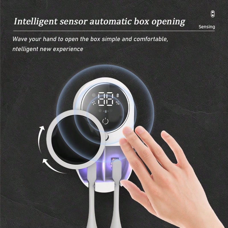 - Soporte de pared inteligente para cepillo de dientes: esterilizador de cepillo de dientes con luz UV. Hecho de material ABS de alta calidad, este esterilizador de cepillo de dientes cuenta con un sistema de limpieza automática que elimina la suciedad de los cepillos de dientes y maquinillas de afeitar. El soporte para cepillos de dientes limpia hasta el 99,9% de tu cepillo de dientes para mantener tu cepillo de dientes en perfecto estado. Este soporte para cepillos de dientes es adecuado para cepillos de dientes manuales, cepillos de dientes eléctricos sónicos y cepillos de dientes giratorios, y es adecuado para diferentes preferencias de cepillos de dientes.