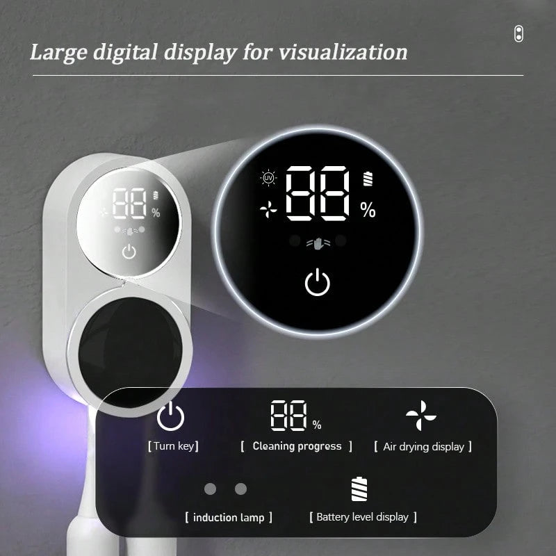- Caja de limpieza y secado automáticos: hecha de material ABS de alta calidad y tiene un sistema de limpieza automático para eliminar la suciedad del cepillo de dientes y la maquinilla de afeitar. La cubierta del cepillo de dientes puede ser hasta un 99,9% efectiva en sus cepillos de dientes. Perfecto para mantener el cepillo de dientes en perfecto estado, compatible con cepillos de dientes manuales, cepillos de dientes eléctricos sónicos y cepillos de dientes giratorios, este soporte para cepillos de dientes es adecuado para diferentes preferencias de cepillos de dientes.